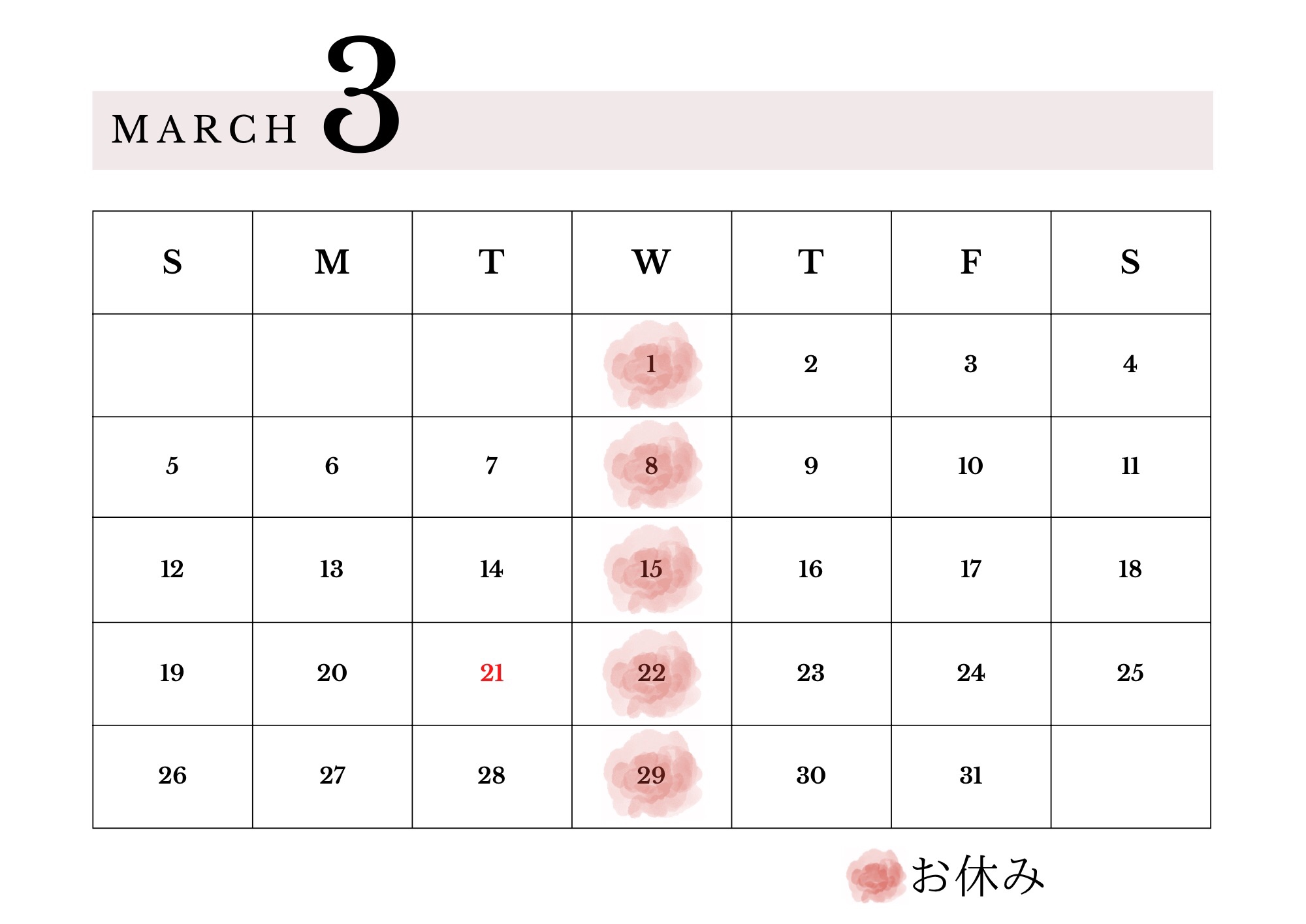 3月休業日のご案内です。